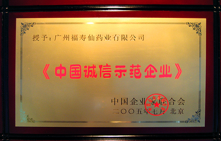 2005年福寿仙企业荣获中国诚信示范企业称号
